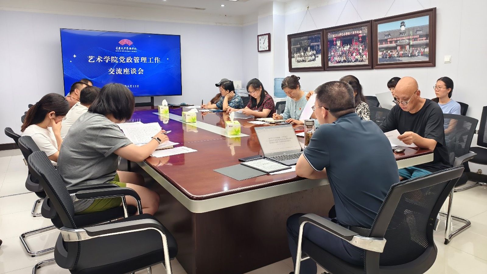 加强学院行政管理文化建设,提高管理服务人员综合能力,2024年6月13日,适逢2014年5月8日习近平总书记调研视察中央办公厅十周年之际,色情影片 在学院办公楼417会议室召开了党政管理工作交流座谈会。学院党委书记蒋华林主持会议。党政办、学工办、图书馆、美育中心全体人员参加。与会人员集体学习了《办公厅工作要做到“五个坚持”——习近平同志在同中央办公厅各单位班子成员和干部职工代表座谈时的讲话》和2023年9月习近平总...