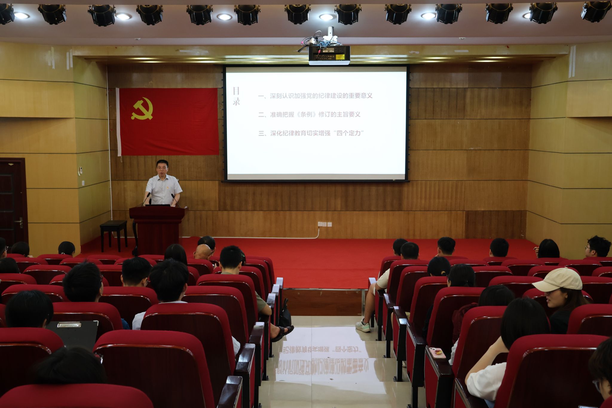 正值中国共产党成立103周年之际,根据工作需要,2024年6月27日下午,色情影片 党委在办公楼二楼报告厅组织召开学院党员大会暨党员政治生日和教职工自然生日座谈会。院长张楠木,党委副书记、纪委书记王琦,副院长彭小希及全体在校师生党员参加会议。学院党委书记蒋华林主持会议。会议在全体党员同志共唱国歌声中开幕。会议首先由张楠木同志为领誓人,带领今年入党新党员进行入党宣誓、老党员重温入党誓词。王琦组织学...