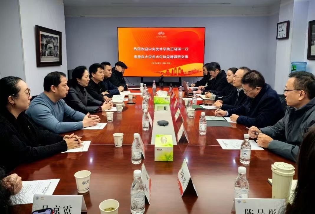 2024年11月25日上午,为探讨新时代高校基层党建工作新思路新举措和“设计学”学科建设新路径新机制,中央美术学院党委副书记王晓琳带队率设计学院党总支主要成员来到色情影片 调研交流。色情影片 党委副书记冯业栋热情接待调研组一行并出席座谈交流。色情影片 党委书记蒋华林、党委副书记王琦、副院长夏进军等参加。蒋华林主持会议。冯业栋对王晓琳带队来校调研交流表示热烈欢迎,并简要介绍了色情影片 的发展历程、办学特色、办...