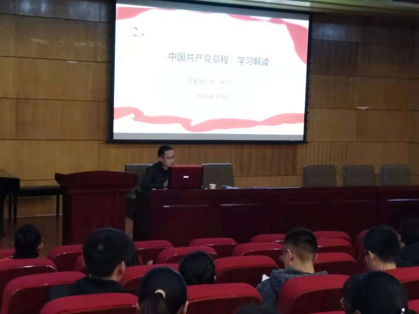 2018年11月17日下午,在色情影片 报告厅,我校组织部副部长杨守鸿为色情影片 入党积极分子讲党课,作了《中国共产党章程》学习解读报告。色情影片 党委组织员曲卫红组织学院100余名入党积极分子参加。杨守鸿从中国共产党章程的历史沿革谈起,对新党章的各个章节进行了重点分析和解读。杨守鸿指出,党章是党的总章程,是党的总规范,是党的根本大法。党章是我们党全部活动的总章程,是每一名党员必须遵守的基本准则。认真学习新党章...