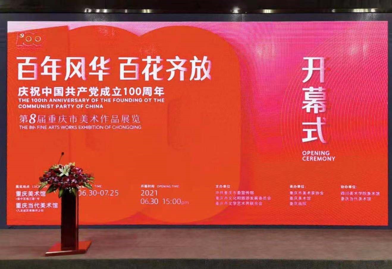 今年是中国共产党成立100周年。为深入贯彻落实习近平新时代中国特色社会主义思想,鼓励全市美术家和美术工作者以艺术的形式颂扬中国共产党百年的光辉历程和建立的不朽功勋,着力推出一批讴歌党、讴歌祖国、讴歌人民、讴歌英雄的精品力作,中共重庆市委宣传部、重庆市文化和旅游发展委员、重庆市文学艺术界联合会决定共同主办的“百年风华 百花齐放——庆祝中国共产党成立100周年·第八届重庆市美术作品展览”,向建党100周年献礼...