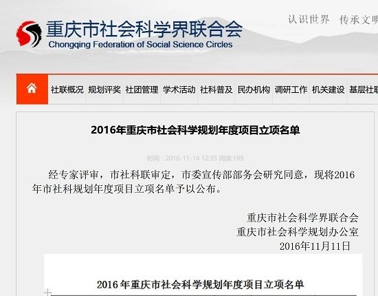 2016年11月11日,重庆市社会科学界联合会、重庆市社会科学规划办公室公布了2016年重庆市社科规划年度项目立项名单,我院孙丽娟教授、孙俊桥教授、夏进军副教授主持申报的项目获得立项。
