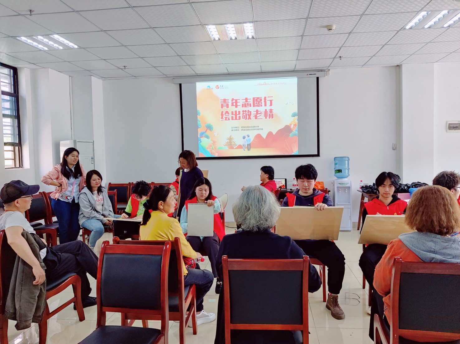 为深入学习贯彻习近平总书记在庆祝中国共产主义青年团成立100周年大会上的重要讲话精神,引导广大青年学生积极服务文明城市创建。2023年4月27日,以“青年志愿行,绘出敬老情”为主题的“五四青年节”志愿服务活动在重庆市高新区虎溪花园社区拉开序幕。美术学系的8名研究生和本科生志愿者:欧阳博、赵瑞琪、古富成、王瑞祥、刘许宸、陈熙禹、唐安利、王林,在美术学系主任肖力的组织下,走进虎溪花园社区,为辖区内60岁以上的老人奉献了一堂生动而精彩 “美育课”,同时也引导和帮助我院大学生上好与现实相结合,服务社会的“思政课”。