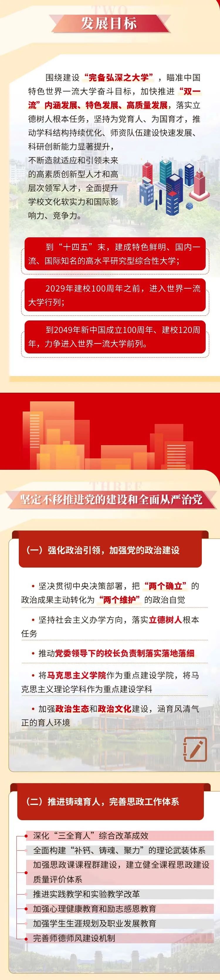 第十三届委员会作题为《胸怀两个大局 践行初心使命 与时俱进建设中国特色世界一流大学》的党委工作报告,总结回顾学校五年多以来的发展成就,擘画未来五年发展蓝图。校长张宗益主持会议。