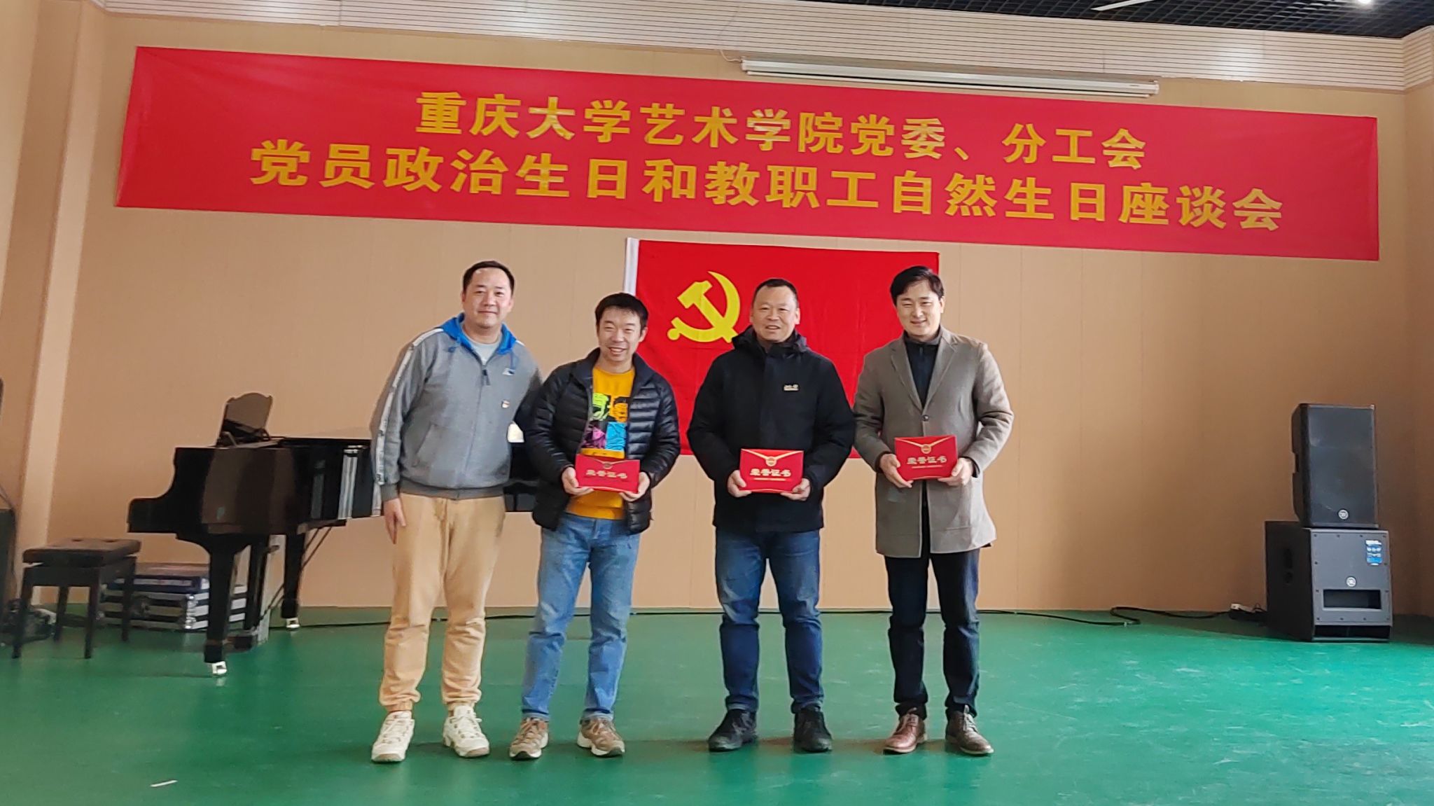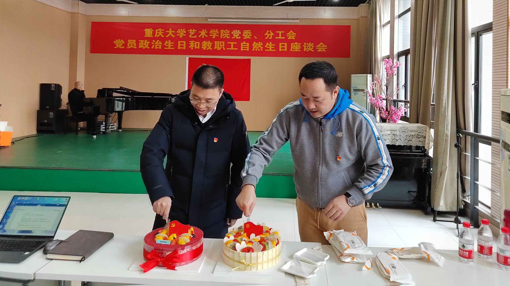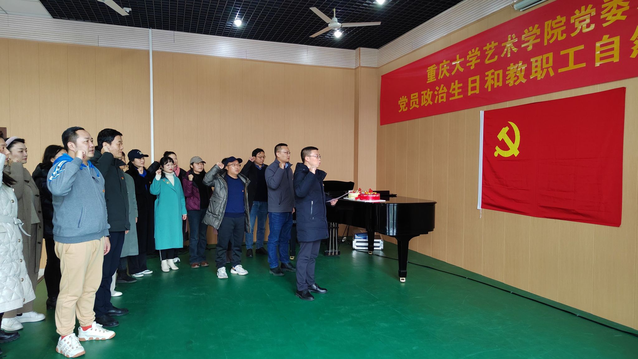 虎溪校区艺术楼A栋音乐系排练厅顺利举行。党委书记蒋华林主持座谈会,院长张楠木、副院长夏进军及11月至2月期间过政治生日的党员教职工和过自然生日的教职工参加会议。