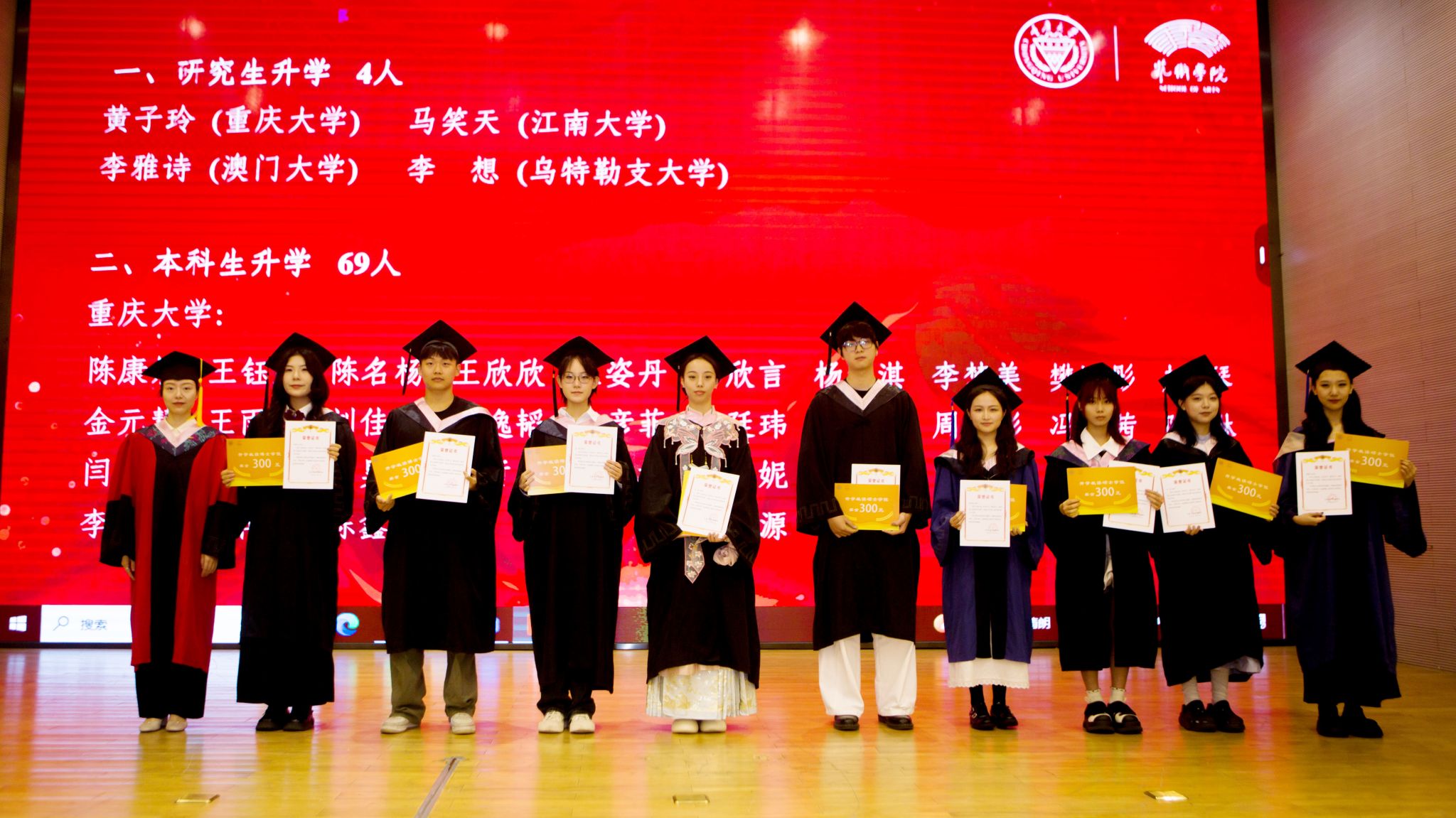 学院副院长彭小希宣读色情影片 2025届升学奖表彰决定并为获奖学生代表颁奖,学院副院长夏进军宣读色情影片 2025届校友大使聘任决定,并为校友大使颁发聘书。
