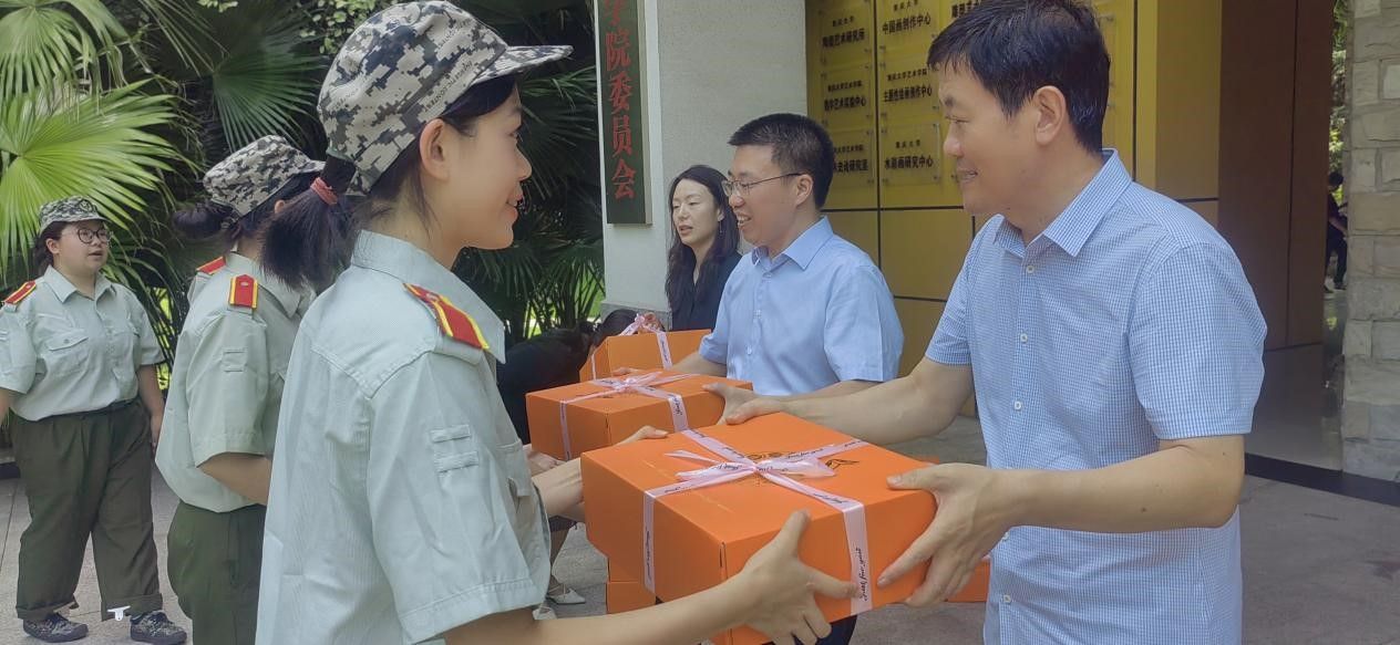 在学院楼慰问2023级全体参训学生、教官和带队教师。学院党委书记蒋华林、院长张楠木、副书记王琦,副院长夏进军、彭小希出席。