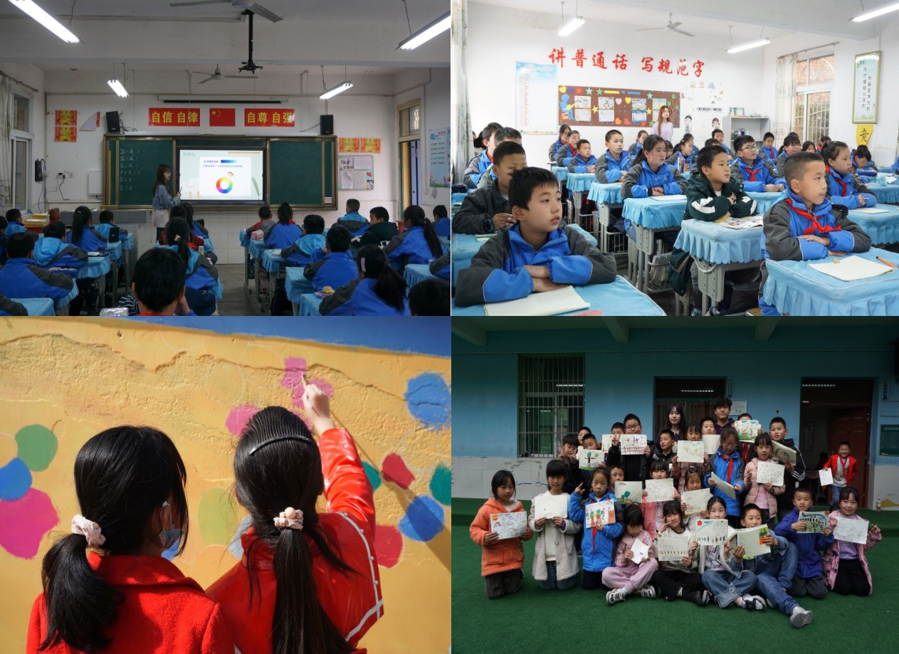 蒲公英艺术支教团以“青年志愿行,美育进乡村”为主题的“五四青年节”志愿活动在陕西省旬阳市麻坪镇中心小学顺利开展。美术学系油画方向的五位本科生同学王林、王印禛、徐露、岳俞含、何瑶,在美术学系老师张轶和系主任肖力的组织下,走进偏远乡村小学,为3—5年级共140人奉献了一次生动而精彩的美育课。
