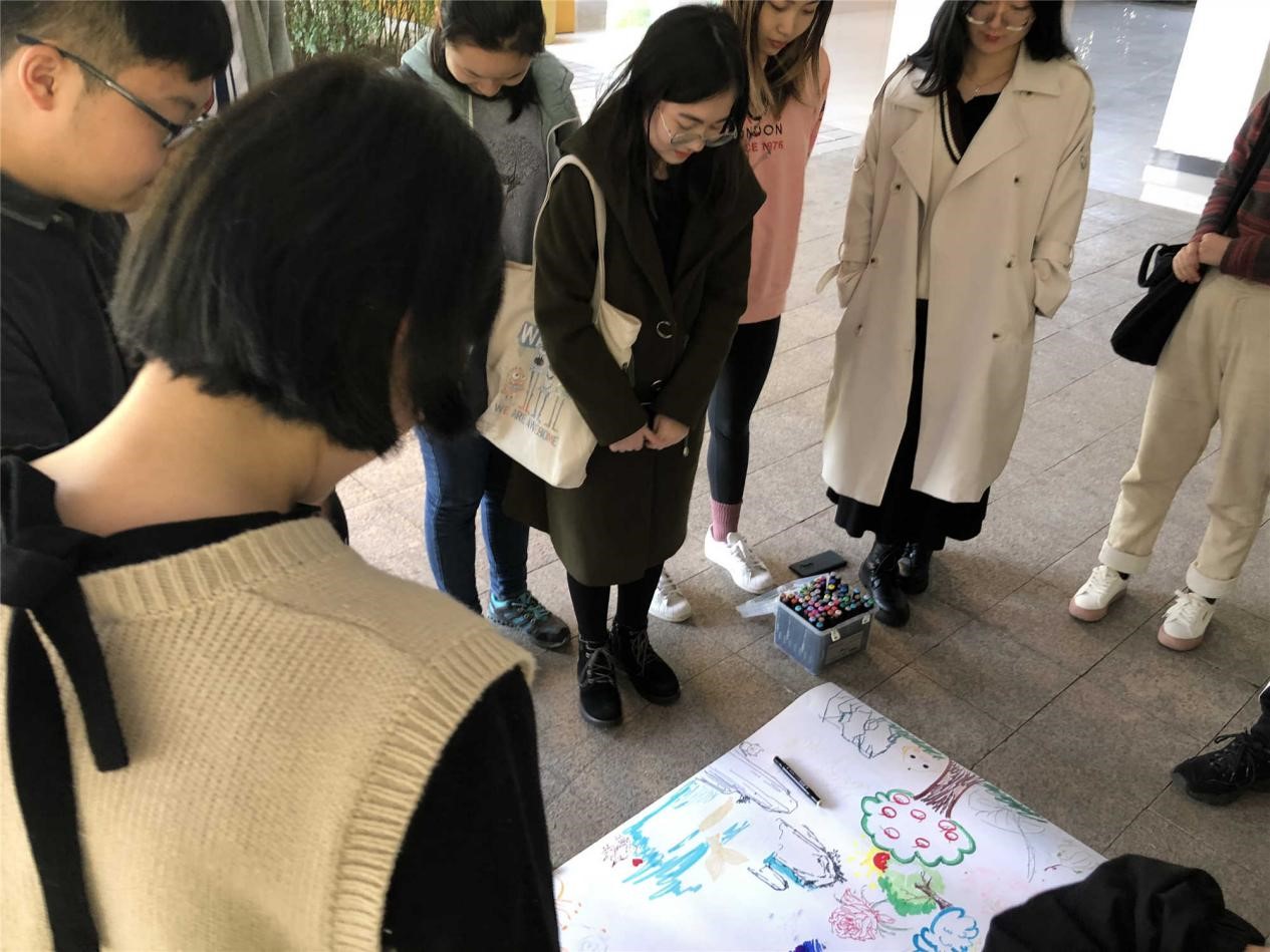 与心灵协会携手于11月14日下午,在学院楼架空层举办“心灵笔迹”系列团体心理辅导活动,活动以绘画的形式展开,活动吸引了大量学院学生参与。