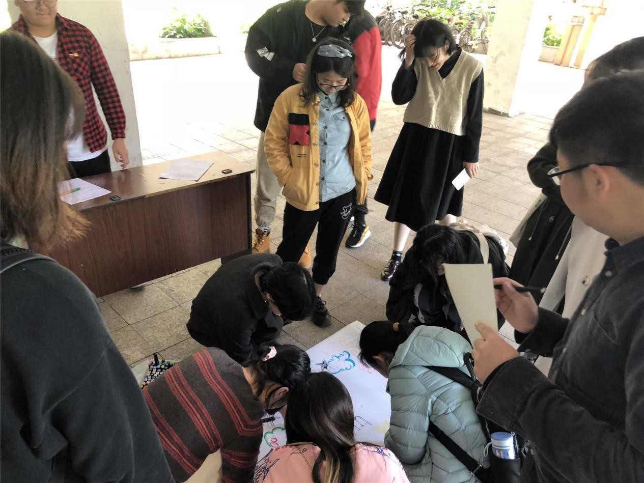 活动伊始,首先向同学讲了游戏形式,并将全体成员分为若干组,每组八人,轮流绘画,每人每次只能画一个物体。每组设立一名记录员,记录每个人每次所画物体。大家按照分组开始绘画创作,每个同学都有自己的绘画语言和心灵语言,把自己心中所思一笔一画的画出来,疏导了心理情绪、增加了互动交流。活动进行了四轮后,结束绘画,大家展开交流,每个人分享自己所画的物体初衷、想法和所要表达的意义。
