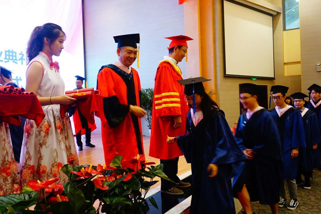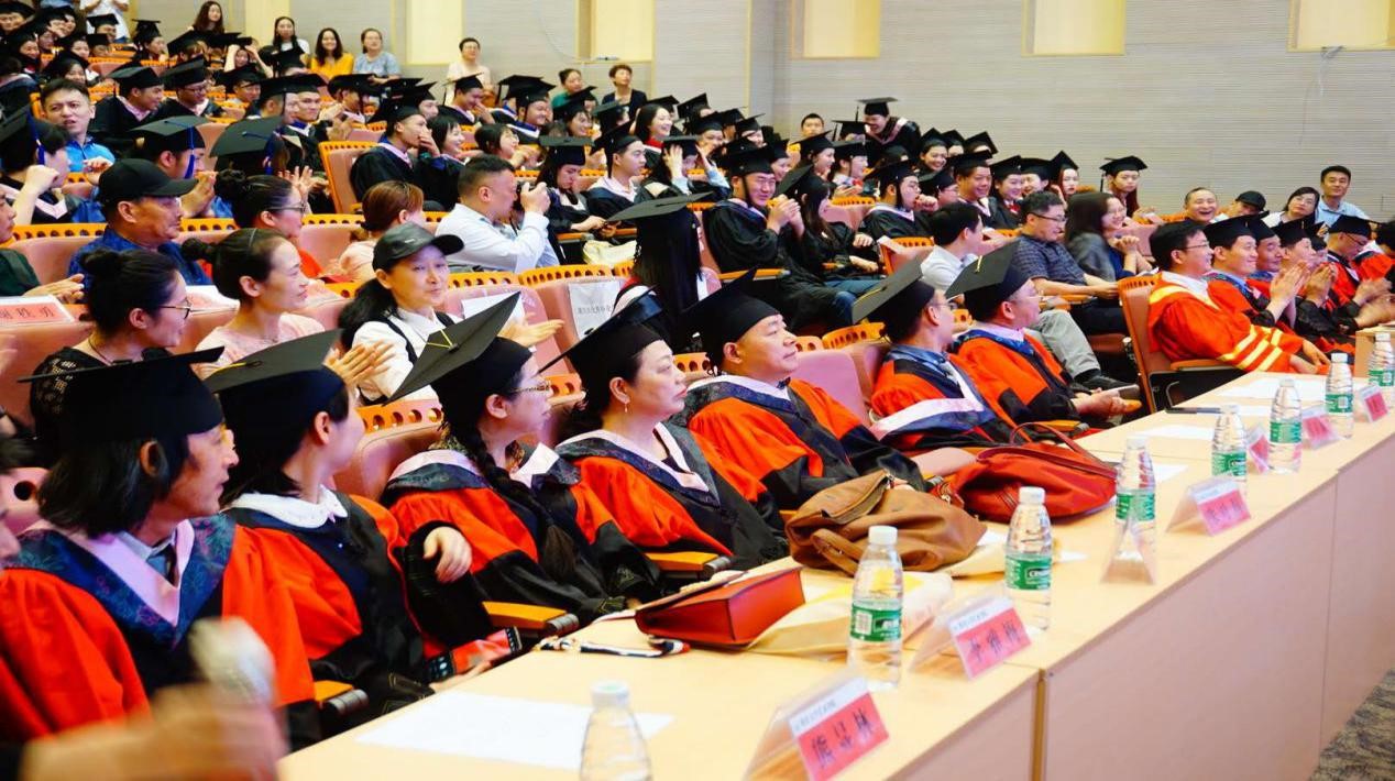 分委会主席雒三桂和党委书记张承康为全体毕业生授位并颁发文凭。