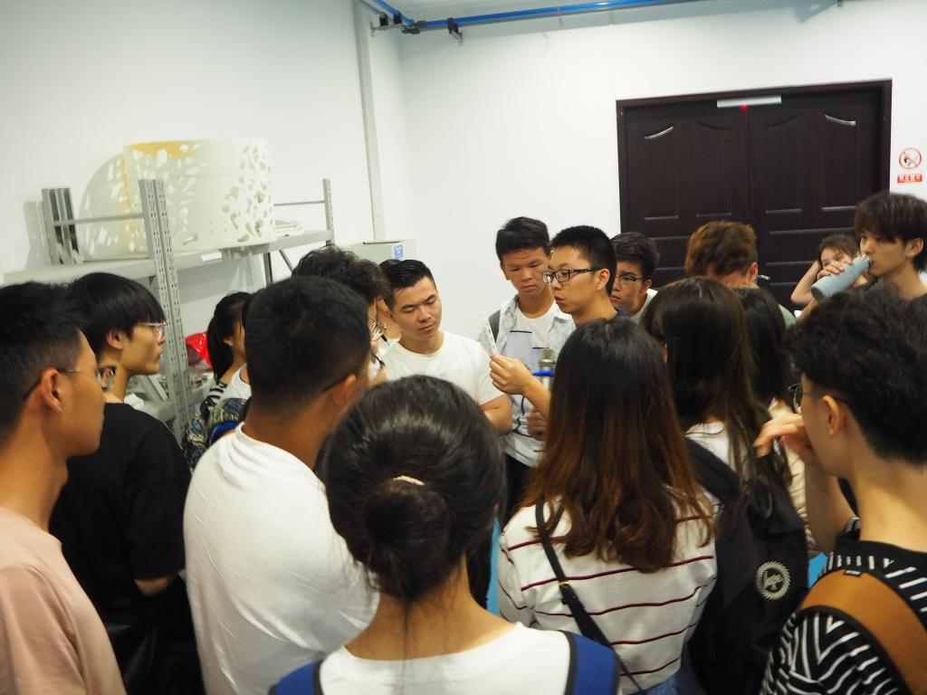 结束乔凯科技的参观后,同学们随即乘车奔赴渝北区仙桃街道数据谷,展开对目前热门加工成型技术,3D打印技术的的参观、学习。在这里,同学们见到了目前3D打印技术的标杆式产品——多色3D打印产品。在讲解人员带领下,同学们了解到3D打印技术目前的技术实现程度,3D打印材料已经不再局限于塑料、树脂、尼龙和部分金属材质,已经逐渐开始攻克对人体器官的打印以及对细胞原材料化的应用,对此,同学们表示十分惊叹。随后,讲解人员带领同学们参观3D打印生产车间及各种级别的3D打印生产机床,了解3D打印产业化现状以及加工过程,在参观过程中加深了同学们对3D打印的理解与设计思考。