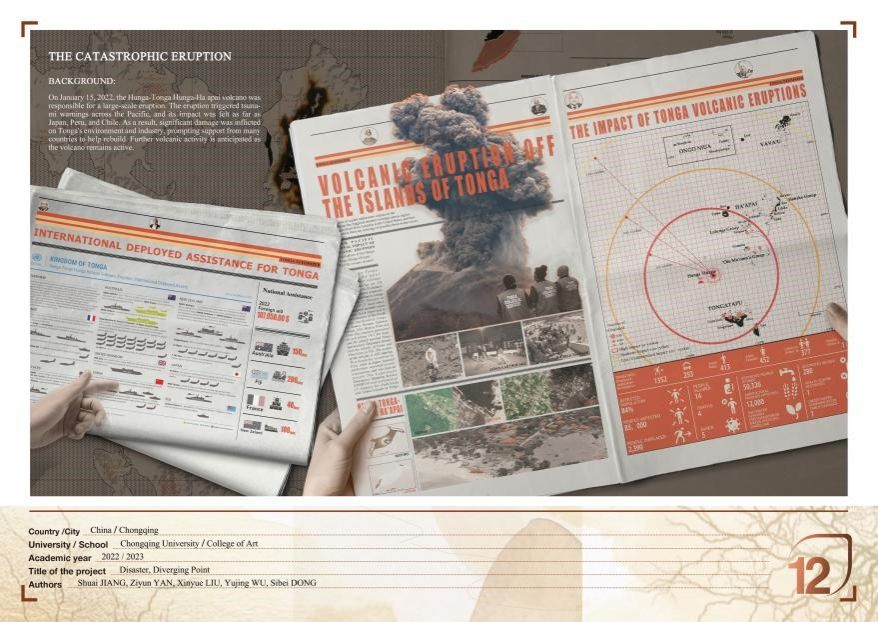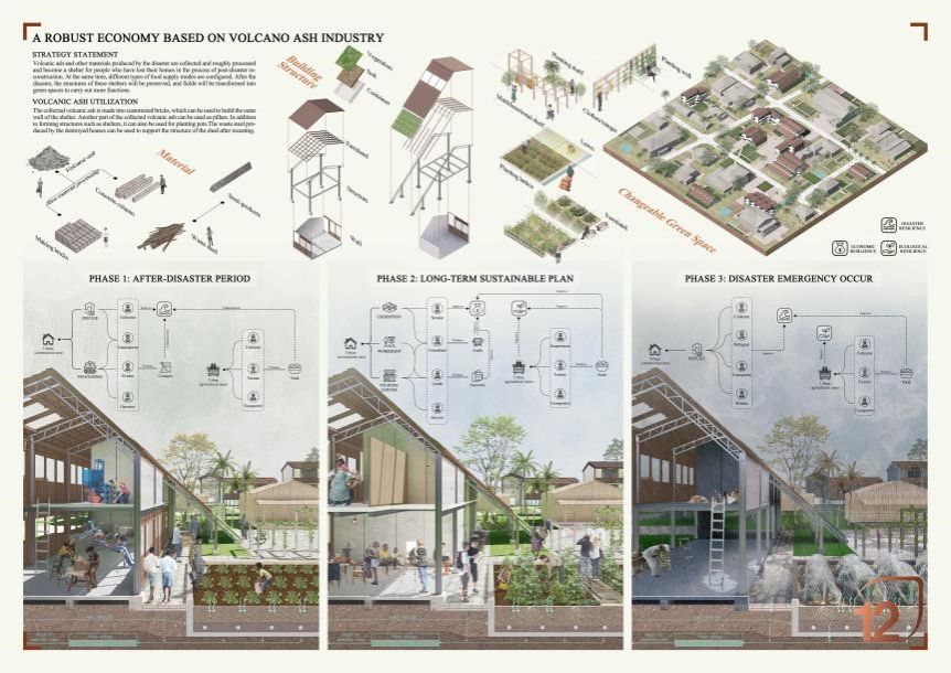 蒋帅同学的作品从自然灾害所引发的生态及产业不可持续问题出发,融合多学科知识,从设计学科角度给出了可行的解决方案。