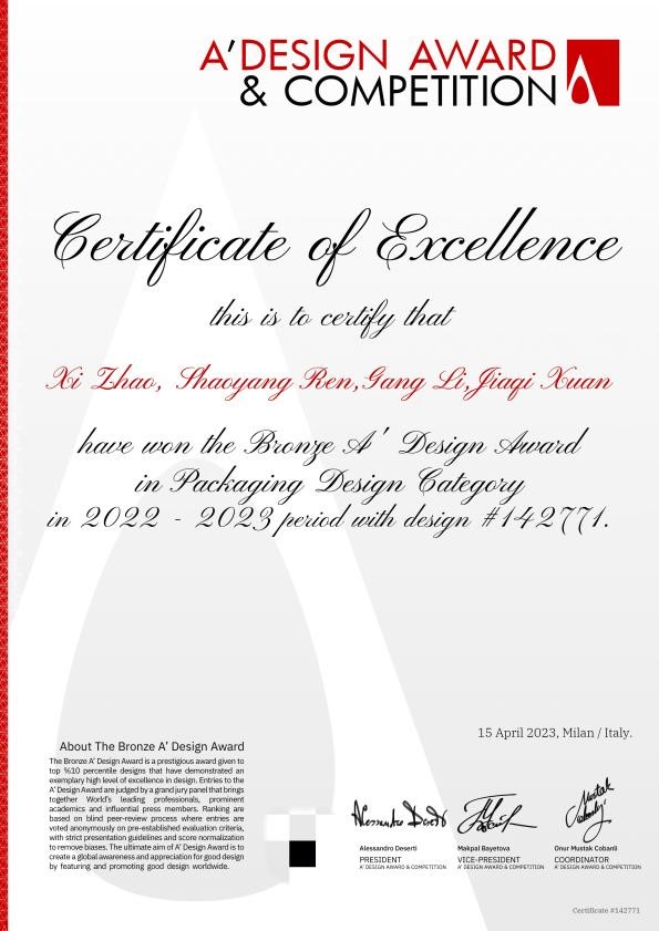 设计系赵玺副教授牵头的设计团队荣获A' Design国际设计大赛铜奖。