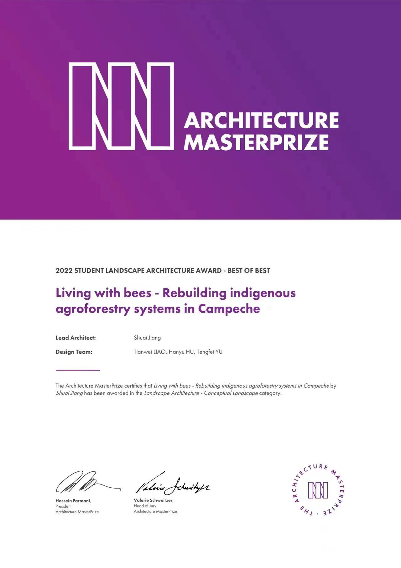 美国建筑大师奖(Architecture Master Prize)由Farmani集团创立于2016年,其前身为AAP美国建筑奖,是最具权威的世界级建筑奖项之一,为全球建筑和设计行业树立新的标杆。AMP奖项计划嘉奖世界范围内的建筑、室内及景观设计的三个方向的最佳卓越设计和创新之作,展示和宣传全球范围最具创造力与创新性的杰出人才,彰显建筑艺术科学在丰富人类生活当中具有的重要意义和价值。据参赛网络资料显示,此次参加的专业组团队包含土人、戴森、扎哈、安藤忠雄等知名事务所,学生组包含港大、哈佛、普林斯顿、央美、国美等学校,竞争激烈。