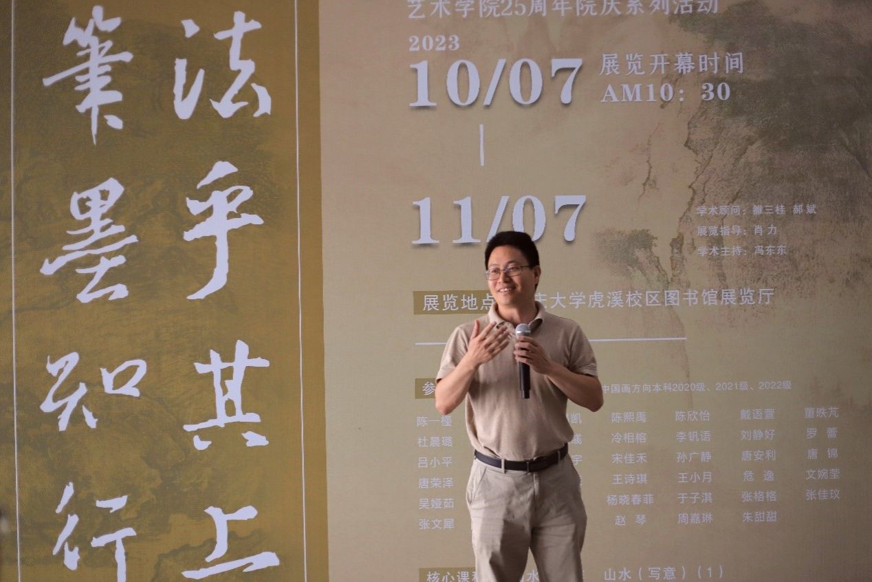 院长、重庆市美协策展与理论委员会副主任张楠木介绍了本次展览的策展过程、主要目的及意义,并对进一步加强中国画方向学科专业建设,提高人才培养质量,做好学校美育教育工作提出了要求。