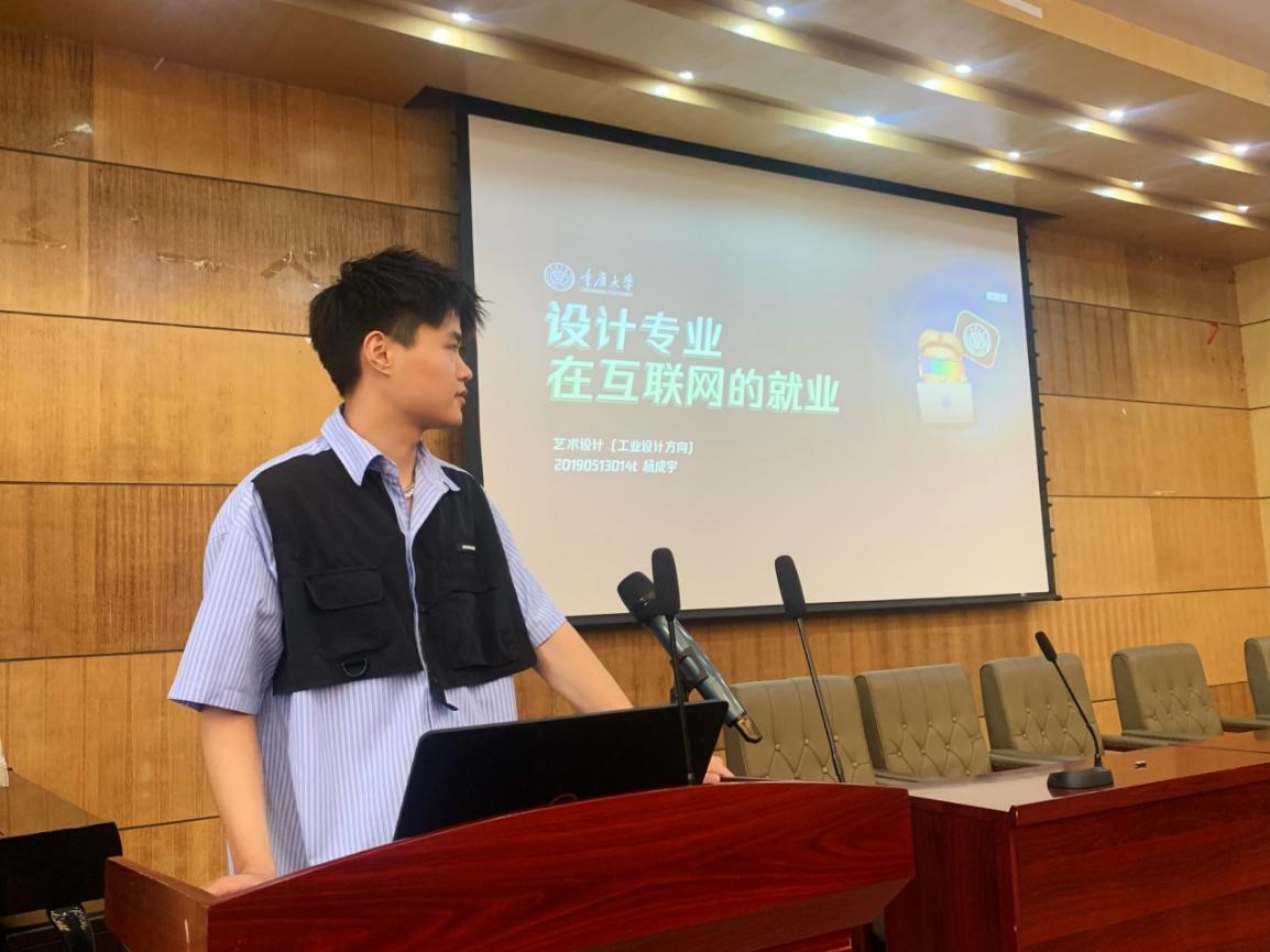 目前签约华为的艺术设计(工业设计方向)专业杨成宇,他以“设计专业在互联网的就业”为主题,围绕互联网公司岗位选择、投递渠道、投递时间、招聘流程、面试问答、薪资水平、OFFER选择、作品集等问题,做了全面而系统的就业经验分享。他希望大家要把握好时间节点,要尽早投入就业行动中,并优先考虑发展前景,找适合自己的工作。