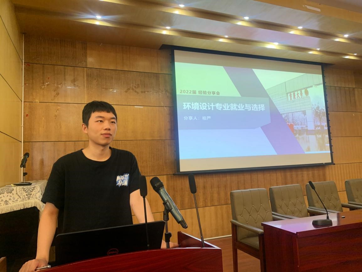 艺术设计(环境设计方向)专业的柏严目前签约中国建筑西南设计研究院有限公司,他向大家分享了关于应聘国企设计院及地产公司的相关技巧,讲解了两种就业单位类型的差异,并前后围绕意向公司选择、简历准备、面试技巧等内容,阶段性展开了经验传授。柏严同学指出,就业应广泛关注相关信息发布,无论是学校就业网站还是相关单位发布的招聘公告,都应仔细阅读,以精准定位自身能力范围。同时,应尽量与相关就业方向的学长学姐多多联系,且在投递简历至面试前的这段时间,着重准备个人作品集,精炼个人代表作品,尽可能凸显自身专业能力,提升被录用概率。