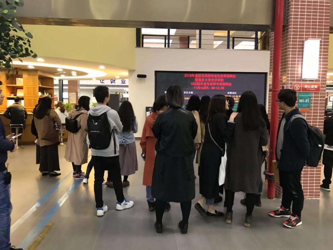 周末的虎溪车水马龙,为招聘会平添了良好氛围,招聘会现场热烈有序、人来人往。为帮助学生精准求职、用人单位高效招聘,我院充分利用发挥校友资源,此次前来的用人单位中就有很多是校友带团队来院招聘,为优质高效的招聘平台提供更有力的保障。