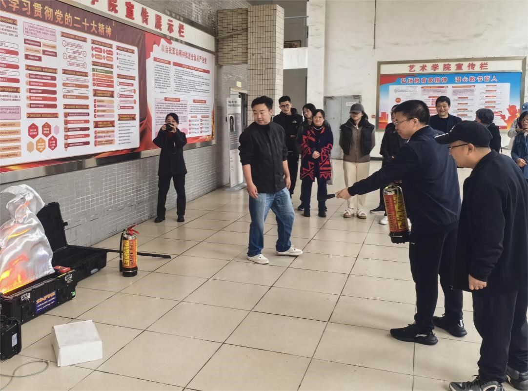 23日13时许,火灾警报声骤然响起,应急疏散演练正式开始。参加演练的260余名师生在滚滚“浓烟”中,从各自所在的办公室、会议室、报告厅,沿着消防指示灯标识的路径,从不同方向紧急而有序地疏散撤离出学院办公楼。接着,保卫处工作人员进行了消防安全培训和现场操作演示。学院党委书记蒋华林、院长张楠木等参加。