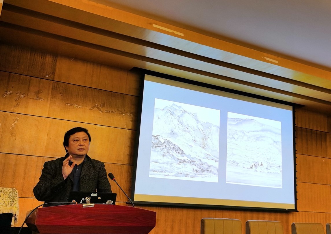 邓建强现担任我院特聘教授。他在讲座中围绕写生与创作,结合自身的艺术实践进行了学术汇报。他从自己的写生、创作与实践展开讲演,展示了大量各具风格的写生和创作作品。从四川大凉山昭觉、布拖以及重庆石柱采风到重庆、四川地区的摩崖造像的系列作品创作再到颇具形式语言特色的重彩花鸟创作,最后到合川桃花山采风现场写生完成作品等,详细地向师生们解读了系列作品从写生到创作再到完成的全部过程。邓建强一直践行着写生与创作高度结合的艺术态度,其对生活的热情和对艺术的执着激励着在场的每一位师生,令同学们收获良多受益匪浅。此次讲座取得了非常好的学习与交流效果,同学们纷纷表示讲座为他们明确了今后努力的方向,对以后的写生收集素材与艺术创作皆具有指导性的意义。