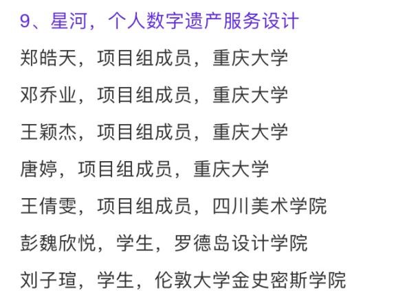 本次大赛共设有26个奖项,其中涵盖了9个单项奖和1个梦想大奖。提名本次TTF Dream 大赛的两支研究生团队分别是“望穿事务所”项目组和“人类研究所”项目组。“望穿事务所”的设计作品“星河—个人数字遗产服务系统设计”由色情影片
