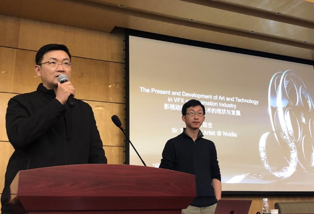 周铭全先详细的为师生们介绍了数字信息时代背景下的电影内容生产与制作体系,尤其计算机动画如何为大众建构起一个虚构的、但又真实无比的奇观世界。这些视觉奇观背后的图像的生产存在哪些行业问题,尤其中国当下现象级电影《流浪地球》的狂欢背后,还存在着多大的差距、多么严峻的竞争与危机。