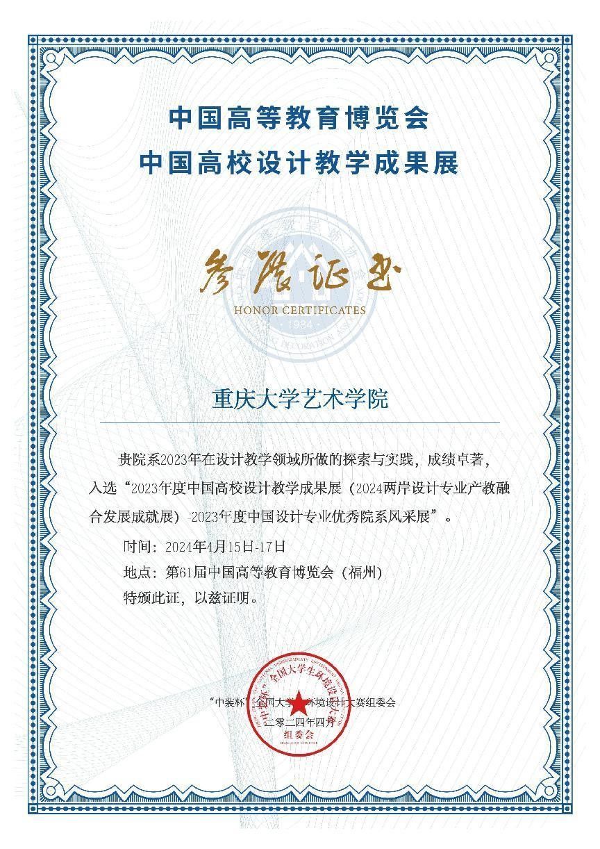 “中装杯”在2024年4月15-17日在福州举办的中国高等教学博览会教学成果展的参展证明。