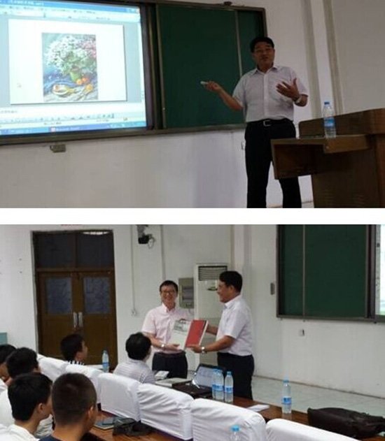 副院长郑亮教授主持,部分师生及书画爱好者聆听了此次讲座。讲座伊始,许世虎院长以自身经历为例向大家讲述了自己从初学工艺美术专业到画水彩水粉、油画等多方面绘画创造的多元化艺术创造的过程,他在绘画创作多元化的艺术求索道路上持之以恒的追求精神让在座的师生无人不钦佩。在许世虎院长的写意人生的绘画作品中,展现出了艺术教育创作的个性化、艺术教育创作的地域化、艺术教育创作的多样化、艺术教育视野的国际化。他独到的观点和绘画的技法走在时代的前沿。让我院师生大开眼界。最后,许世虎教授代表色情影片