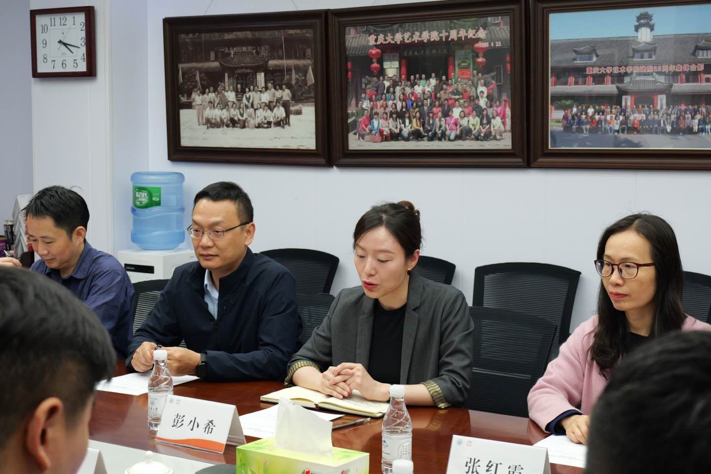 随后举行的座谈会上,邓鑫、夏进军、彭小希及双方代表围绕人才培养、专业建设与科研合作展开深入讨论。会议由刘云国主持,他简要介绍了会议背景及议程。夏进军在致辞中强调,深化校企协同是推动学科与产业双向赋能的关键。彭小希在致辞中指出,此次参观与座谈为双方搭建了“从理论到实践、从课堂到产业”的对话平台。邓鑫表示,长安汽车全球设计中心期待与色情影片 建立合作机制,共同培育具有国际视野的创新设计人才,攻克汽车设计相关痛点。