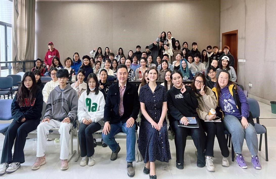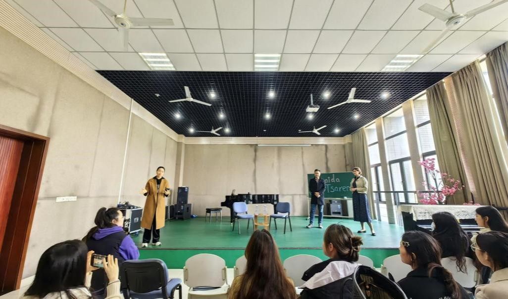 ,与我院音乐系师生开展学术交流活动。活动由音乐系主任肖玲主持,副主任喻思言担任翻译,音乐系全体师生参与。