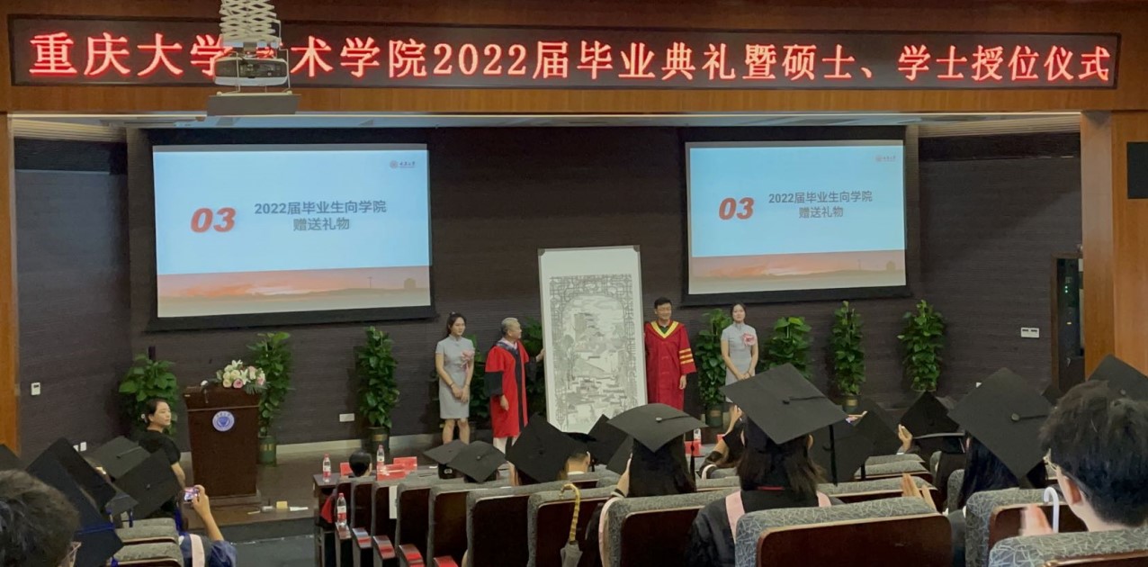 典礼在庄严的国歌声中正式开始。首先由2022届毕业生向学院赠送礼物,表达了对学院的感恩与祝福。随后相继进行了毕业班各专业展示,美好的求学时光在屏幕上回放,在场的师生共同回顾了毕业生同学们美好大学生活。