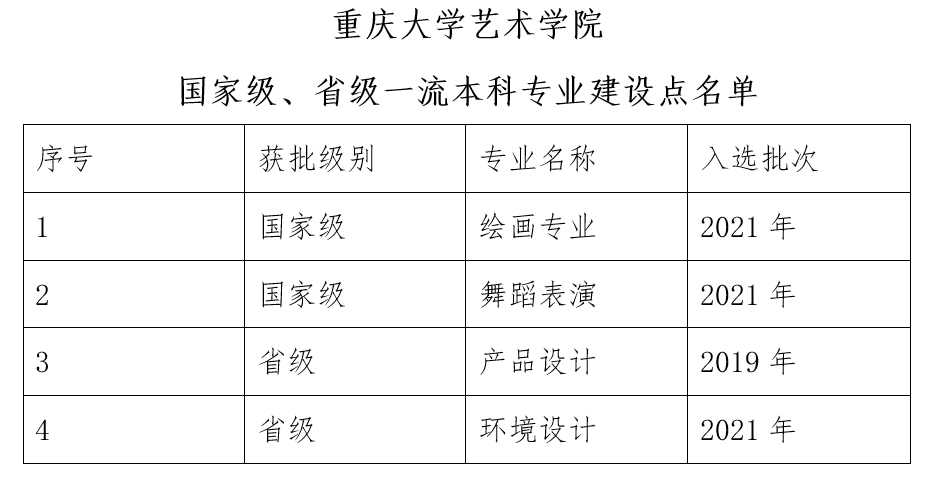 “舞蹈表演”、“绘画”两个专业入选2021年度国家级一流本科专业建设点!近日,教育部办公厅公布了2021年度国家级和省级一流本科专业建设点名单(教高厅函〔2022〕14号),我院上述两个专业列入国家级名单,环境设计专业列入省级名单。这标志着我院在学科建设、人才培养等方面取得了较好的阶段性成果。