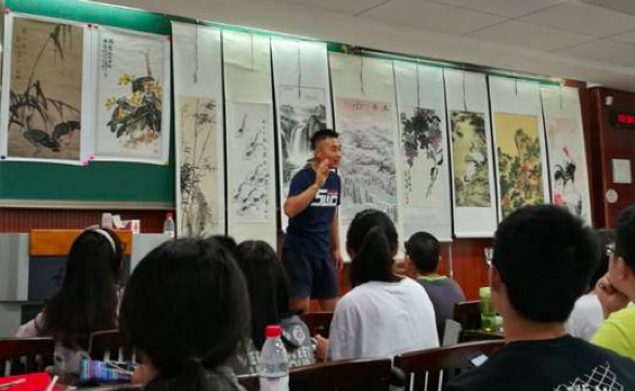 《中国美术史及名作鉴赏》以人类发展历史为主线,以中国传统思想文化为背景,带领同学们充分认识中国精神文化的美术形式,鉴赏具有代表性的名作、佳作,以提高同学们的艺术修养和鉴赏能力。用高尚的艺术作品引领学生的社会风尚。在课堂上,况成泉老师不仅利用多媒体技术多方位多角度展现各种艺术作品,引导同学们如何欣赏艺术、体会文化的魅力,还把自己珍藏的作品带到课堂上给同学们讲解,唤起了同学们对美术作品的极高学习热情。