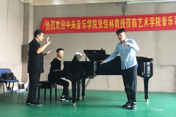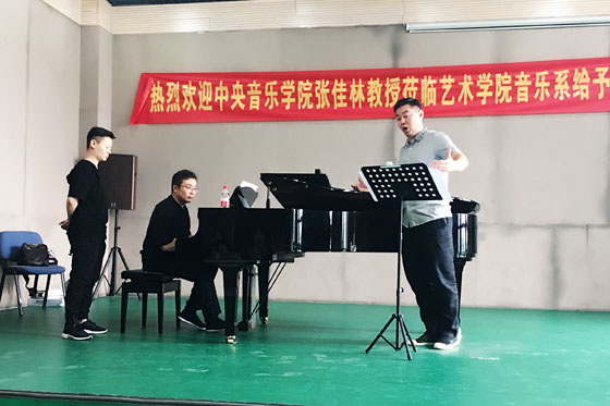 音乐系排练厅(DYA203)进行艺术指导大师课现场示范教学。九点半大师课准时开始,排练厅座无虚席,在学院陈燕副院长的主持下,音乐系的全体老师及学生聆听并观摩了此次大师课。张佳林教授为我院音乐系多位师生进行了声乐演唱的艺术指导,从作品的创作背景到写作技法,从情感分析到舞台处理,最后达到怎样的视听效果与艺术感染力,他表示艺术处理对表演的发生、发展、变化以及听众感受起着重要作用。张佳林教授生动幽默,干货满满的讲解让音乐系师生受益匪浅,受到师生的高度赞誉,现场不时响起笑声与掌声。