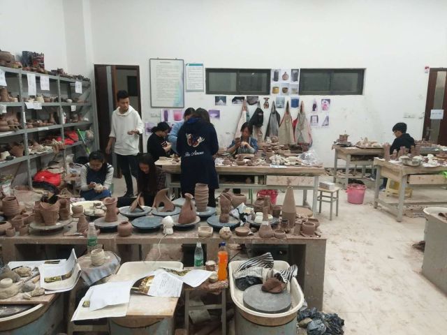 楼一楼开办2018年度陶瓷展览。同学们精心布置了整个展会,作品云集,尽显风采。这些陶瓷作品都是在余洋老师的陶艺课程上完成的,精心雕琢的作品具有独特构成感与文化感,令人击节称赞。