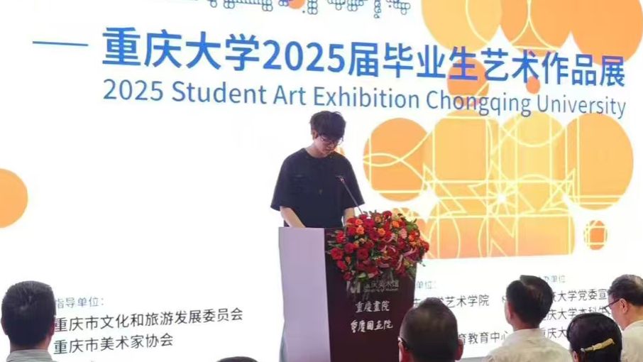 王发荣在致辞中指出,本次展览充分展现了数字智能技术与艺术创作的深度融合,体现了当代青年学子对艺术的独特理解和无限创意,是一场形式多元、内涵丰富的艺术盛宴。他表示今后将进一步加强双方合作深度、效度,推动重庆艺术人才培养创造新的高度。
