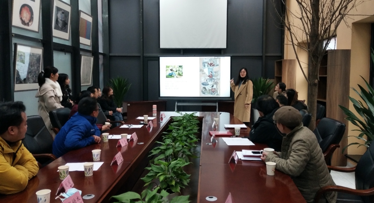 “中国画研究生创作研究”专题研讨会上,中国画专业研究生通过PPT 展示创作的作品。