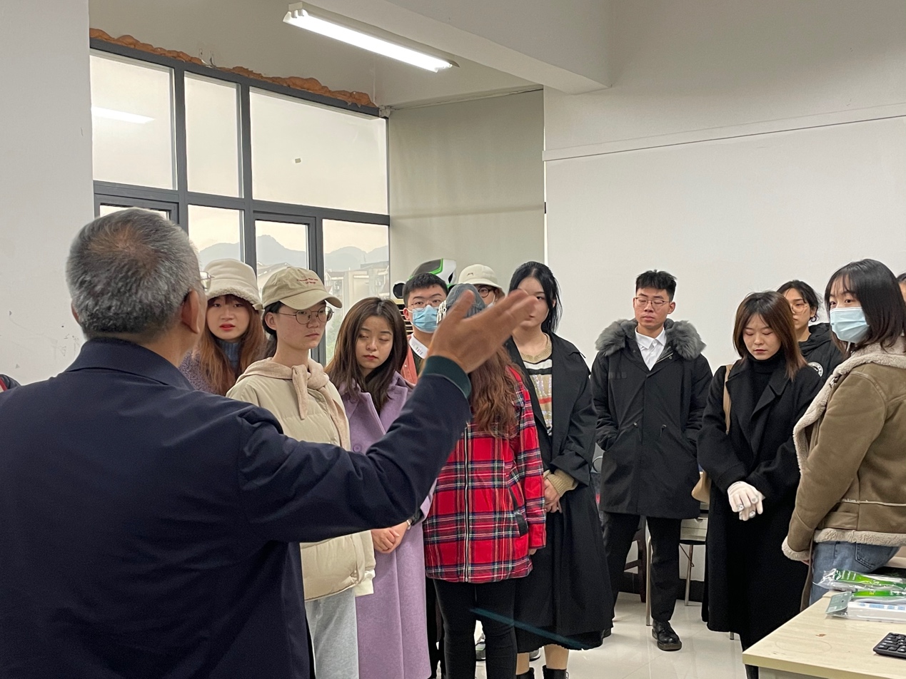 印刷包装工作室参观并对目前同学们参与的包装设计项目进行了指导。