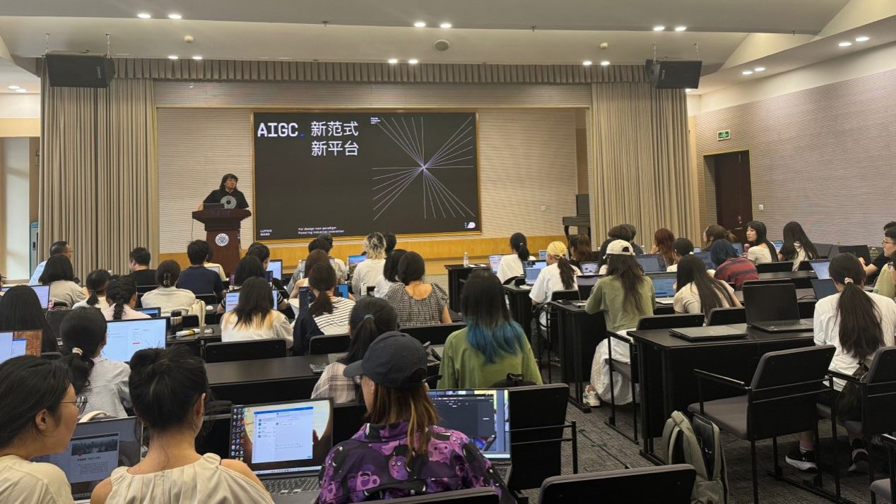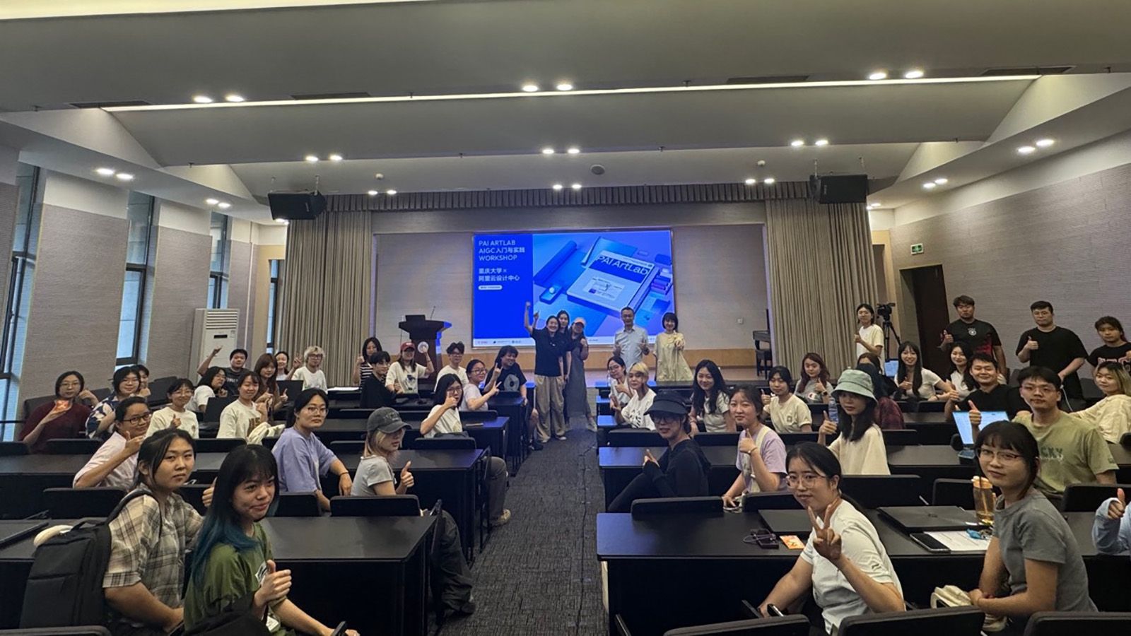 胡峻、李易晓还带领师生们亲自动手体验了PAI ArtLab AIGC实验。通过实操,同学们不仅掌握了AIGC技术的基本操作,还深刻体会到了技术带来的高效和便捷。最后,他们为现场呈现优秀设计作品的学生,颁发了精美的纪念品。
