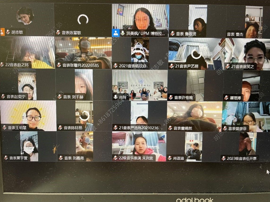 副院长彭小希、音乐系主任肖玲分别致辞,对各位专家的国际学术交流与前沿学科共享表示感谢。学术活动采取中英双语形式进行,音乐系师生参与,由校友黄雪洁博士主持。