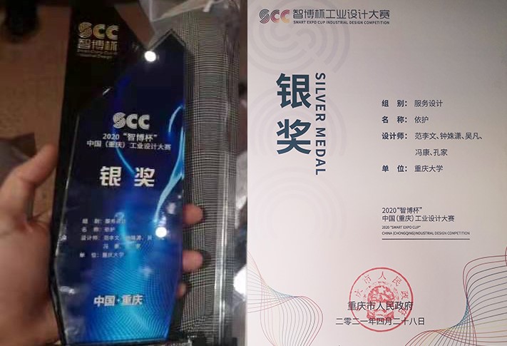 设计学系教研团队提交的作品《家用凝血检测多维服务系统设计》斩获大赛服务设计组金奖,获得奖金10万元!产品设计专业本科生团队提交的作品《依护——医用PPE辅助脱卸设备及系统设计》获得大赛服务设计组银奖,奖金5万元!