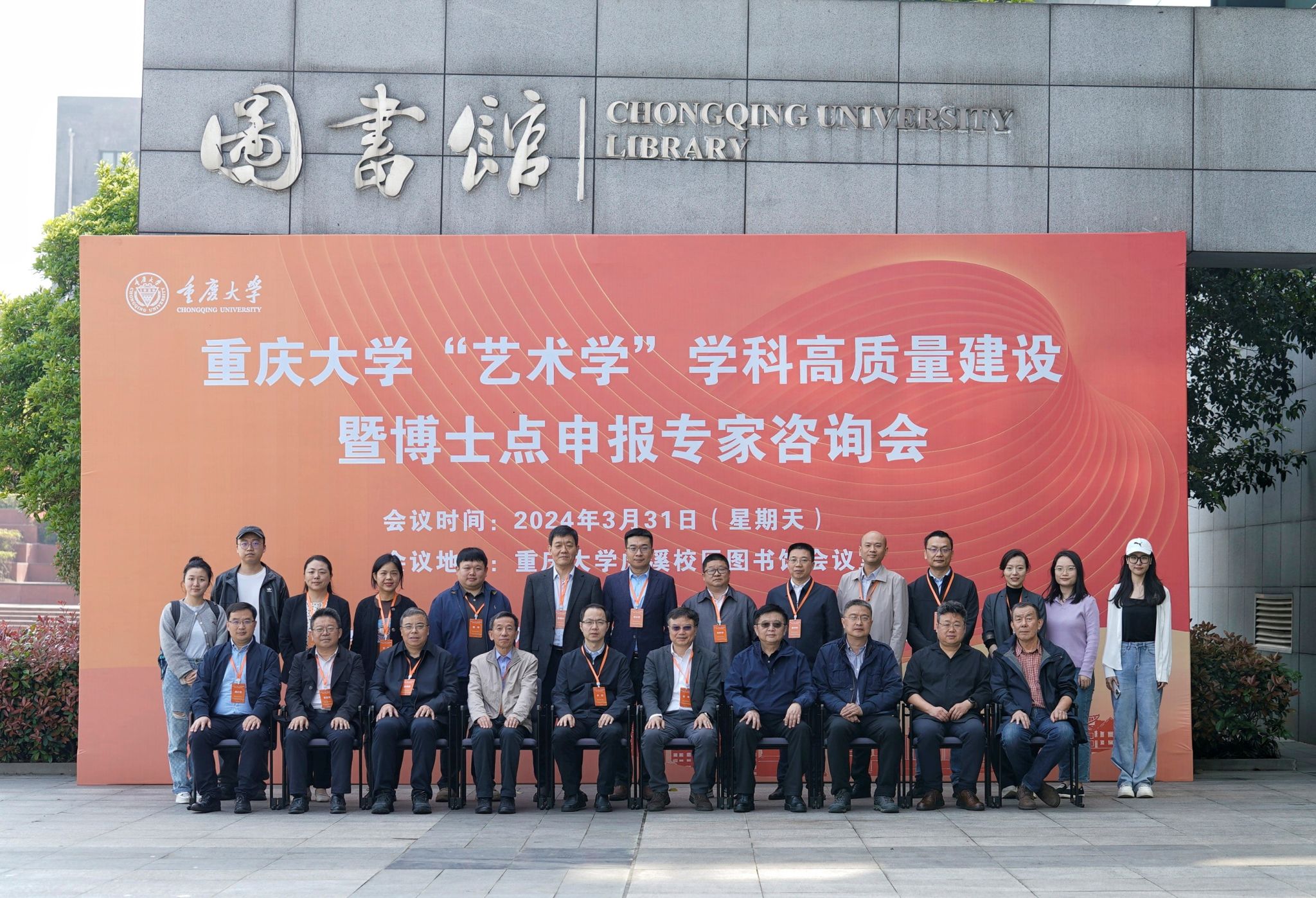 与会人员在虎溪图书馆一楼广场合影。