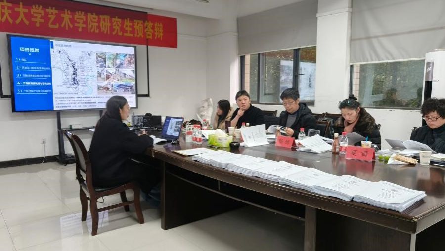 孙俊桥、肖玲、刘云国、熊喜秋等校内导师,四川美术学院尹丹、皮永生、张国云,西南大学邱正伦、重庆师范大学陈昊等校外专家,担任答辩专家组专家。55名2021级研究生参加预答辩,2022级、2023级部分研究生旁听学习。