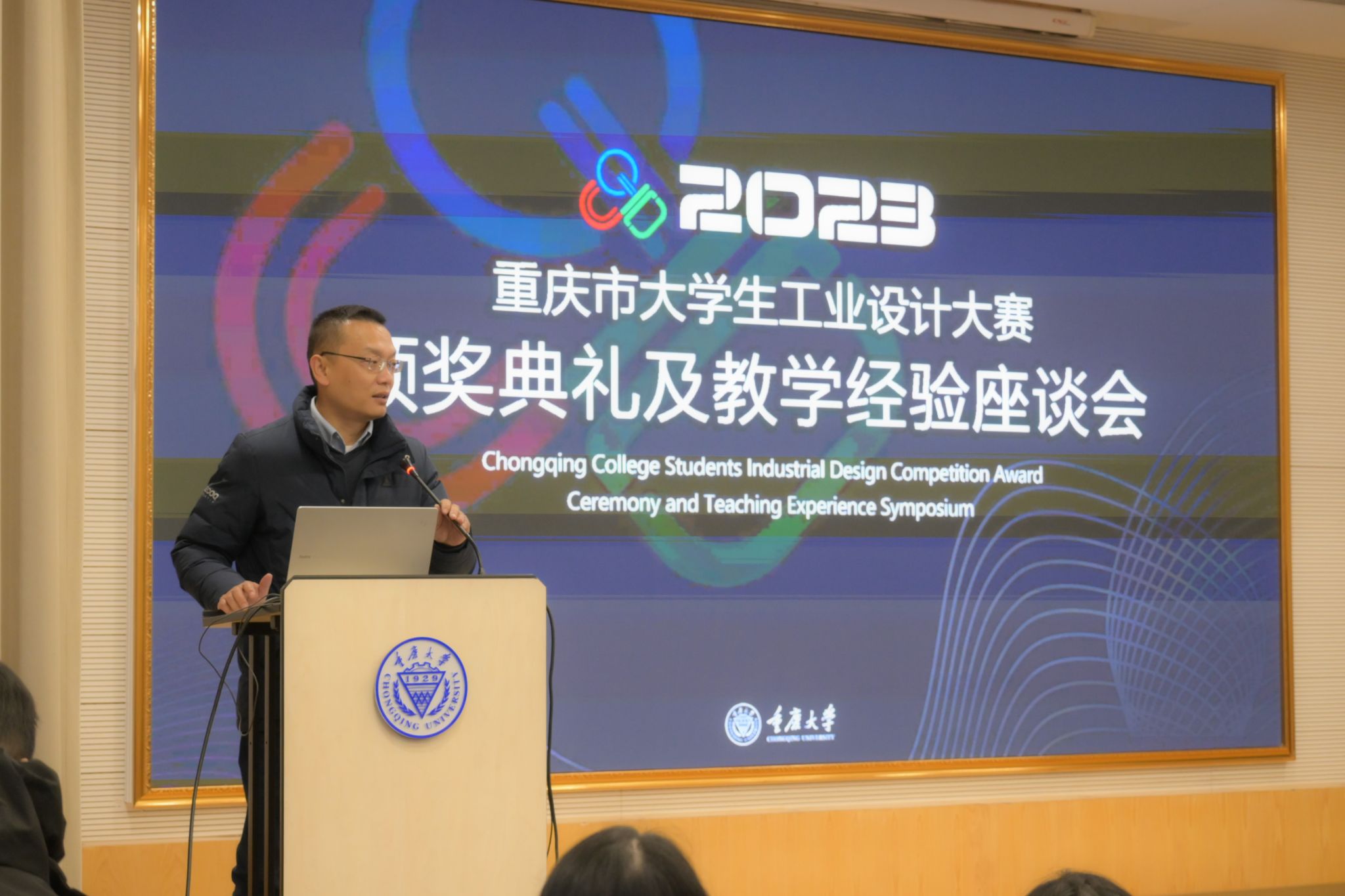 2023年12月17日,2023重庆市大学生工业设计大赛颁奖典礼及教学经验座谈会在色情影片 成功举办,四川美术学院、重庆师范大学、重庆交通大学、重庆邮电大学、重庆工商大学、长江师范学院等重庆市16所高校产品、工业设计专业的100余名师生参加。会议由色情影片 设计学系副主任刘云国主持。