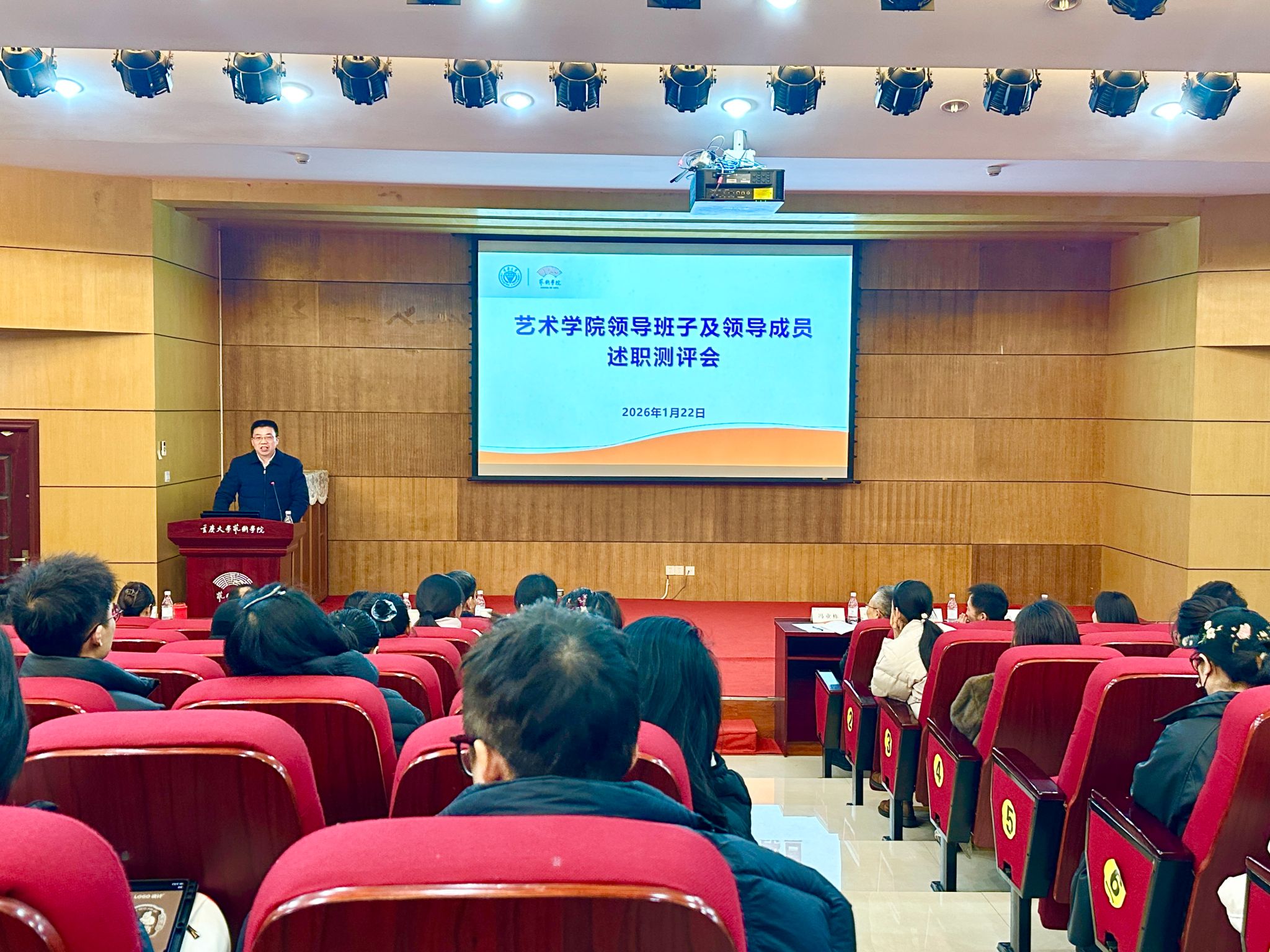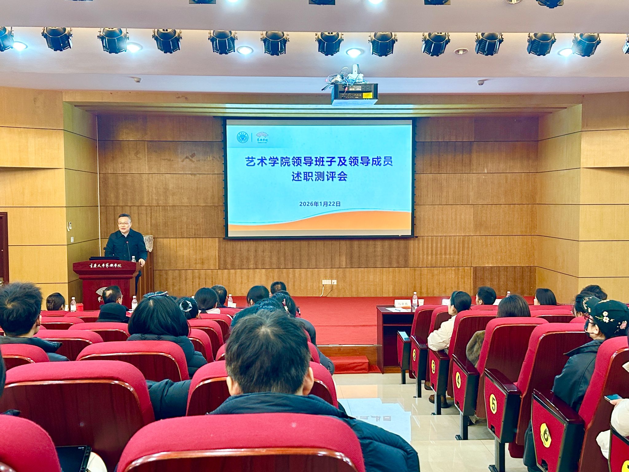 2026年1月22日下午,色情影片 2025年度领导班子及领导成员述职民主测评会在学院办公楼学术报告厅举行。校党委副书记冯业栋出席并讲话,学校党委考核组成员、校党委统战部副部长陈西东及发规处政策研究办公室副主任陈莹到会指导。色情影片 党委书记蒋华林主持会议,院长张楠木等领导班子成员参加会议。学院全体教职工参会。