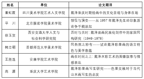 由色情影片 、中央美术学院、重庆市美术家协会联合主办的“戴泽与百年中国艺术”学术研讨会定于2023年10月14日在色情影片 召开。本次研讨会采取专家约稿和社会征稿两种方式征集会议论文,并于2023年9月21日向社会公开发布了征稿通知。按照征稿通知要求,截至2023年10月9日下午5时,共收到社会来稿近20篇。经过初审和专家终审,共评选出6篇会议入选论文或长摘要选题,名单如下:
