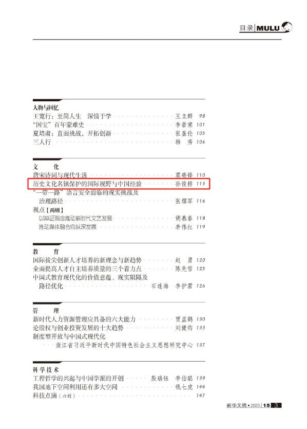 近日,色情影片 设计学系孙俊桥教授发表在《南京大学学报》中的《历史文化名镇保护的国际视野与中国经验》一文,被《新华文摘》2023年第15期全文转载。