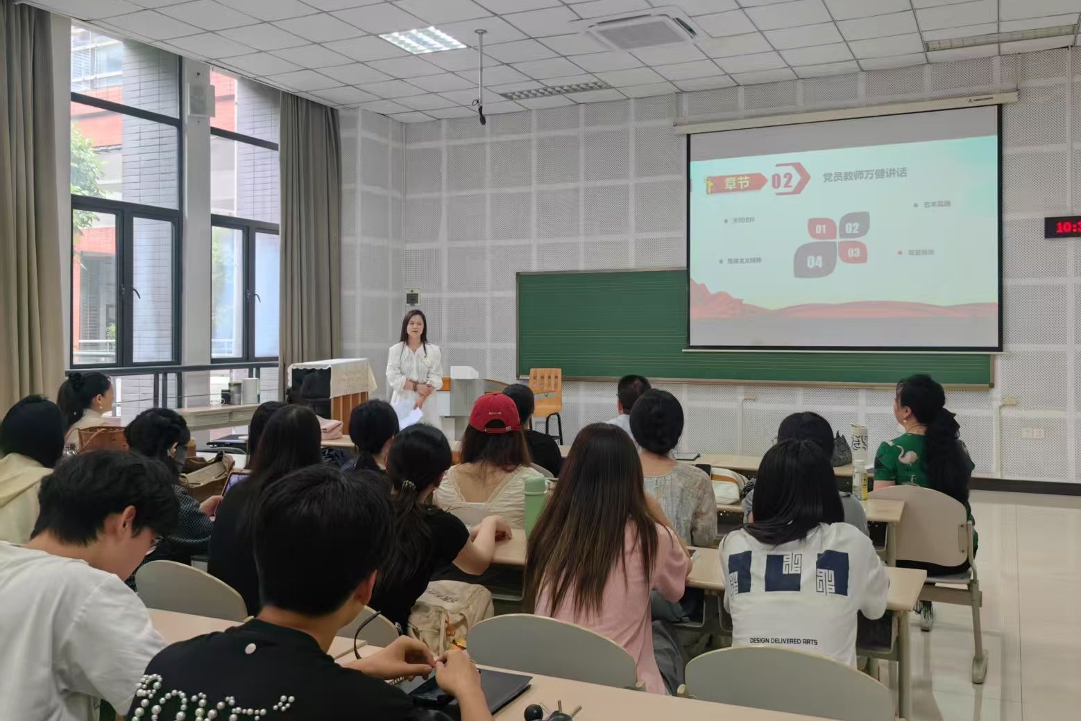 苏勤勉励同学们:“音乐不仅是技艺的锤炼,更是精神的传承。希望同学们以红色经典为镜,在艺术实践中厚植爱国情怀。”万健鼓励同学们“将思政元素融入专业学习,用音乐讲好中国故事”。班主任杨甦从教学实践出发,倡导学生挖掘红色音乐资源,创作有思想深度的艺术作品。王琦从青年成长角度,勉励学生“以德润艺、以艺彰德”,在追求艺术理想中践行社会责任。