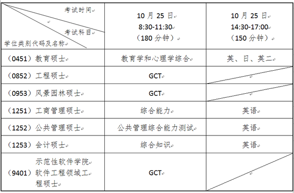 一、考试科目及时间安排: